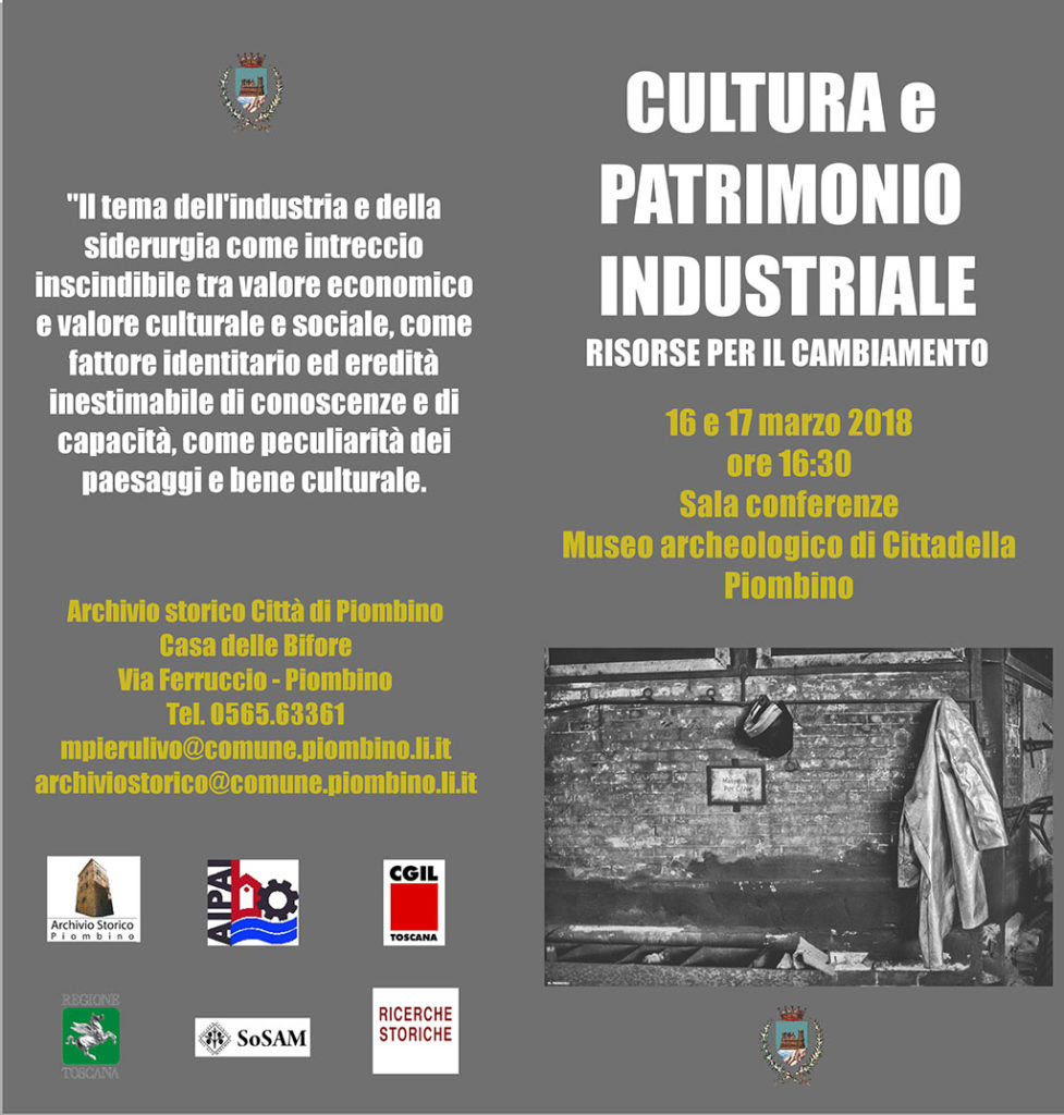16 e 17 marzo 2018 ore 16:30 Sala conferenze Museo archeologico di Cittadella Piombino Il tema dell’industria e della siderurgia
