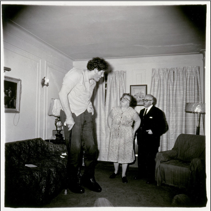 A ritroso. Diane Arbus nasce da un famiglia ebrea di aristocratici, nei “ghetti dorati” di New York nel 192316. Sono proprietari dei grandi magazzini Russeks, in Fifth Avenue. Ha un’infanzia affettiva difficile con i genitori e un grande legame d’amore con il fratello, il poeta Howard Nemerov. Si sposa a diciotto anni, con Allan Arbus, un fattorino dei magazzini Russek’s, e negli anni cinquanta raggiungono insieme il successo come fotografi di moda. Lavorano per le maggiori riviste del settore e le loro fotografie sono sovente pubblicate da Vouge o Glamour.