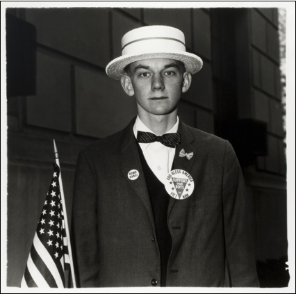 Tre. Nell’immagine Patriotic young man whit a flag, N.Y.C., 1967, Diane Arbus condensa il sentimento più stupido che l’uomo si sia impartito. L’amore per la patria. Assembla la bandiera americana, lo sguardo verso il cielo e la gioventù fascistoide di un ragazzo pronto a sparare sul primo uomo di colore che passa davanti al suo giardino. Diane Arbus lo vede come un mezzo cretino. È un’iconologia del luogo comune che rimanda al denaro, alla carriera, al potere, alla vendetta o all’ignoranza… c’è sempre una messe di sprovveduti pronti a figurare la storia dell’ultima idiozia politica e solennizzare le banalità ordinarie con in mano una bandiera, un cristo o un fucile. I miserabili sono sempre dalla parte dell’odio e trovano pace soltanto il giorno nel quale l’impiccano. A un certo grado di qualità intellettuale non facciamo prigionieri, perché bisognerebbe dar loro il pane della libertà e la pietà non è rivoluzionaria, diceva. Siamo fatti della stoffa di cui sono fatti i nostri sogni.
