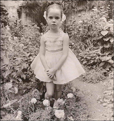 Sei. Nessuno mai è riuscito a fotografare la bellezza fatata o l’estraneazione dionisiaca dell’infanzia come Diane Arbus. Nemmeno Lewis Carroll, forse. Basta andare a leggere l’immagine Petal pink for little parties, white-over-pale form parties, 1962, per comprendere tutto il dolore che il cuore di un bambino può contenere e allo stesso tempo mostrare anche tutta la caratterialità di una stagione dell’uomo, della donna, troppo presto dimenticata. Diane Arbus fotografa la bambina come un fiore tra i fiori ma è per lo spettacolo della festa che è stata mascherata da fiore e il viso non è proprio quello di un angelo, semmai esprime una tensione interiore che denota una falsa sicurezza e, più ancora, la grinza della bocca lascia trasparire un’adultità già sedimentata e restituita all’urgenza della domesticazione sociale.