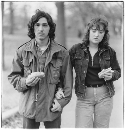 La deriva fotografica (non solo della Arbus, ma di tutti i randagi della fotografia di strada) è un lasciarsi andare alle variazioni o scambi emozionali. Il disagevole diventa superamento dell’ostacolo e l’azione del fotografo sui ritrattati fissa i soggetti alla deriva in nuovi abissi dell’erranza, restituita alla propria coscienza o conoscenza apolide. Al di là del riconoscimento del soggetto, ciò che più conta nella fotografia della deriva è la devalorizzazione dei cerimoniali, dei rituali, dei formulari… che hanno investito l’immaginale estremizzato come ghettizzazione ed espulsione dalla rete sociale. La filosofia della fotografia di strada alberga nel dettaglio, nell’atteggiamento chassidico o nella surrealtà ereticale che fa della luce saturnina l’origine di tutte le disobbedienze.