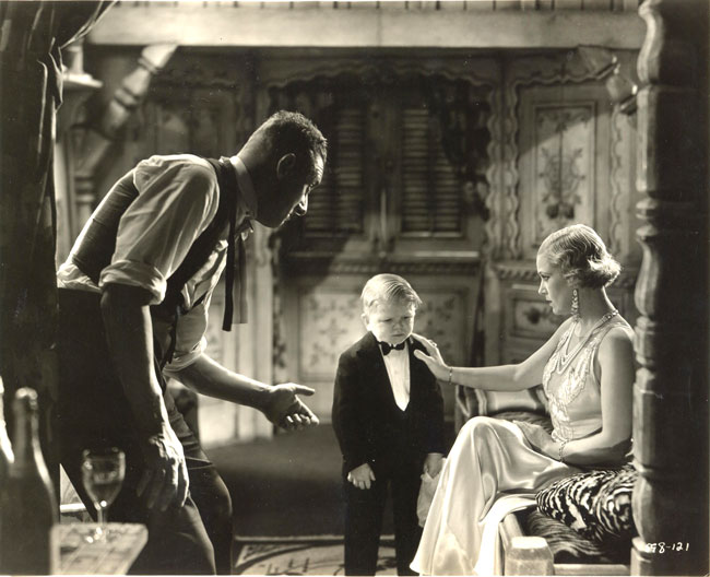 La sceneggiatura di Freaks, firmata da Robbins, rivisitata da Willis Goldbeck e Leon Gordon (non accreditati) è piuttosto didascalica (secondo le richieste del mercato)… Browning la usa solo come traccia, canovaccio per raccontare una storia sulla “diversità” estrema… la scenografia di Merrill Pye e Cedric Gibbons è forse troppo elementare, a tratti scontata… l’impianto del film comunque non risente di queste cadute espressive, anche perché è sostenuto dalla grande fotografia in bianco e nero di Merritt B. Gerstad e dal montaggio a ventaglio (sequenze lente intrecciate ad altre scorciate) di Basil Wrangell. La presenza attoriale dei nani Harry e Daisy Earles è davvero straordinaria e Olga Baclanova dipinge sulla crisalide/specchio dello schermo, una perfetta, indimenticabile bionda cattiva (ripresa poi tante volte nella commedia nera-favolistica americana).