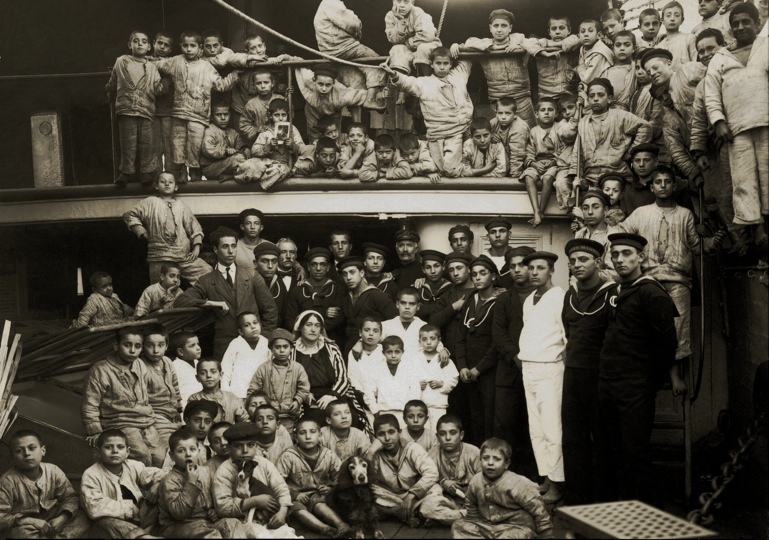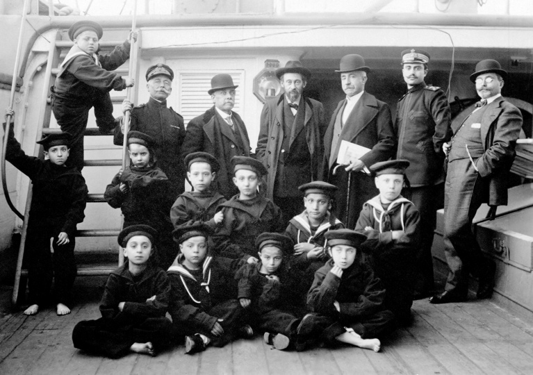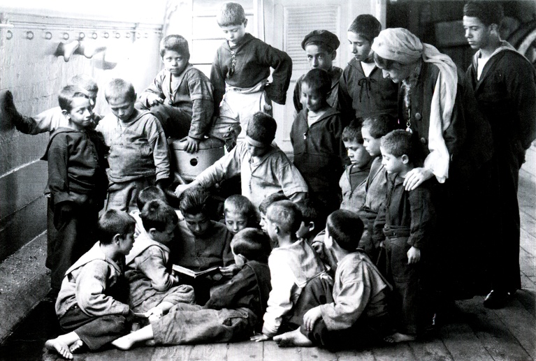 Lo spettacolo è l‘insieme della comunicazione umana trascolorata in merce. La storia insegna che sovente la gioventù più bella muore in galera o costretta all’esilio… l’amore di sé e per gli altri è il solo mezzo per abolire lo stato presente delle cose ed esigere non solo il pane, ma anche il profumo dell’acacia rosa. Il pudore della fotografia sociale muore con l’innocenza e l’autenticità dei bambini di strada di Napoli e del mondo (non solo) nei primi del Novecento… può parlare di fame solo chi la fame l’ha conosciuta o chi l’ha aiutata a superare e a sconfiggere. Una signora della buona borghesia napoletana, Giulia Civita Franceschi (1870-1957) è stata l’artefice di un “sistema pedagogico” che porta il suo nome — “sistema Civita” —… era un metodo educativo singolare, si trattava di recuperare i bambini senza famiglia nelle strade di Napoli, ragazzi abusati in molti modi che venivano sottratti alla sicura delinquenza ed esposti a ogni tipo di malattie… poneva in primo piano i valori di accoglienza, dignità, solidarietà e faceva dei piccoli sbandati futuri uomini… era un’educazione del cuore che aiutava ogni bambino a riconoscersi nei propri valori e nei propri talenti… il Ministero della Marina fece dono alla città di Napoli la nave Caracciolo3 e tra il 1913 e il 1928 fu destinata ad accogliere gli orfani dei marittimi e dei fanciulli abbandonati di Napoli (750 anime belle) che giornalisti, storici e fotografi poi hanno chiamato “Scugnizzi”.