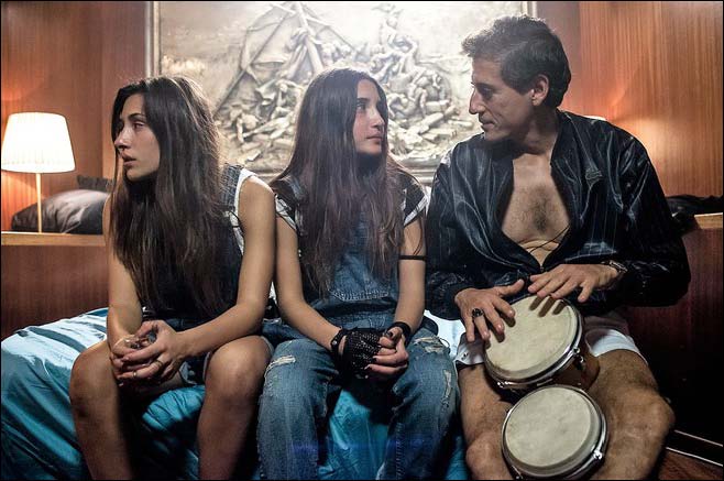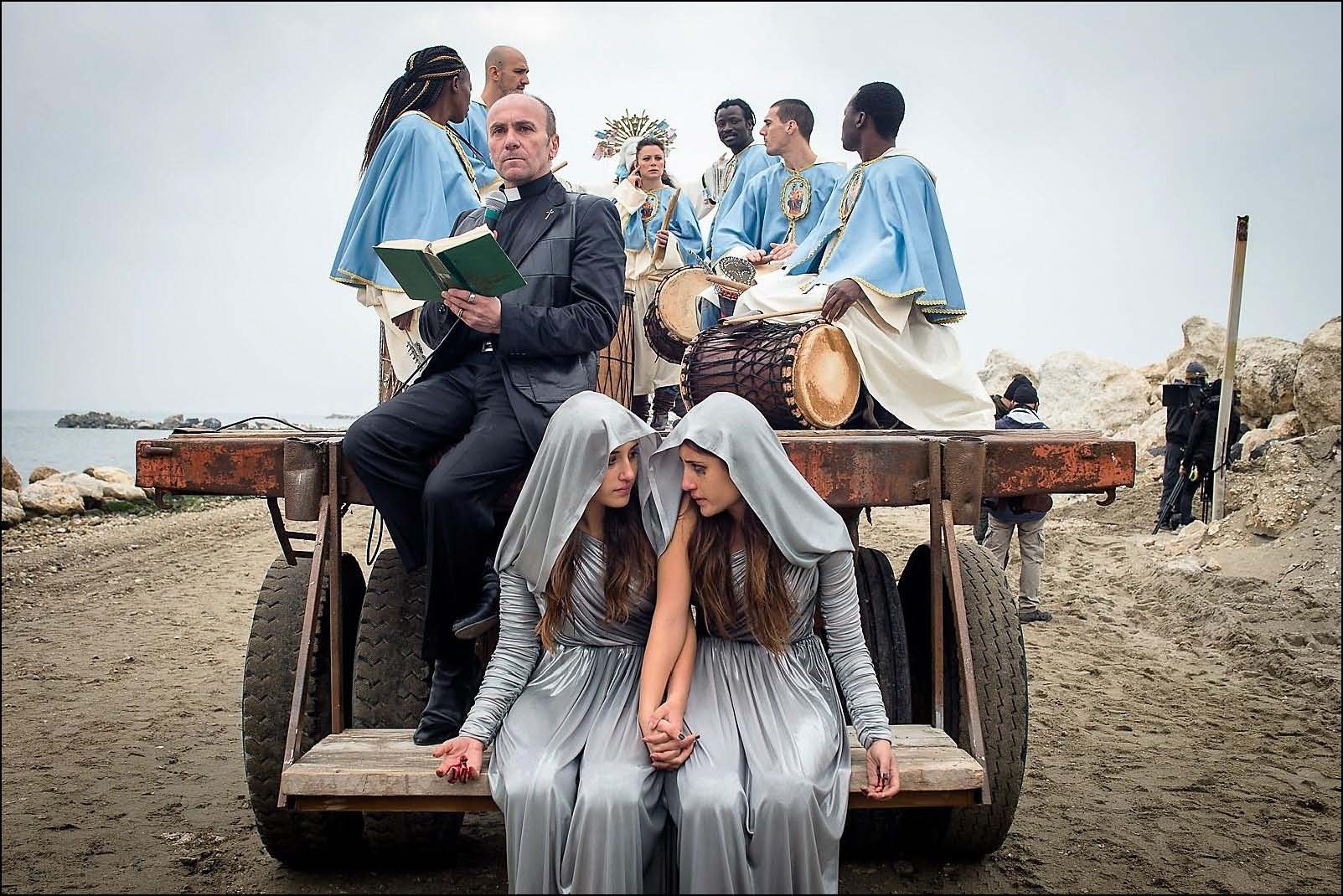 Indivisibili, dicevamo, racconta di Viola (Marianna Fontana) e Dasy (Angela Fontana), gemelle siamesi che si esibiscono come cantanti a feste e matrimoni nel territorio violato dalla camorra di Castelvolturno… il padre (Massimiliano Rossi) è l’autore delle canzoni e agente-carceriere delle figlie (spende tutti i soldi nel gioco)… la madre (Antonia Truppo) è sempre fuori di testa per abuso di marjuana … il prete del quartiere (Gianfranco Gallo) è uno oscuro personaggio che predica superstizioni e raggira i disperati del luogo… quando un medico (Peppe Servillo) si offre di operare le gemelle per dividerle, Viola e Dasy (forse un po’ troppo ingenuamente) vanno alla ricerca dei soldi necessari per la clinica svizzera… il prete le respinge e allora si rivolgono a un sedicente produttore discografico (Gaetano Bruno) interessato più alla loro “sessualità diversa” che alla loro musica… vanno sulla sua barca… c’è un festino in corso… le ragazze chiedono il prestito di 20.000 Euro e l’uomo vuole abusare di una delle due… le ragazze non ci stanno… riescono a prendere i soldi e si buttano in mare… le trovano sulla riva ancora vive… i soldi sparsi sull’acqua sono raccolti dai migranti (come un miracolo divino)… le vestono da Madonne e vengono adorate come sante da una processione di disadattati… Viola e Dasy saranno comunque divise, riusciranno ad amarsi come prima ma da persone “normali”.