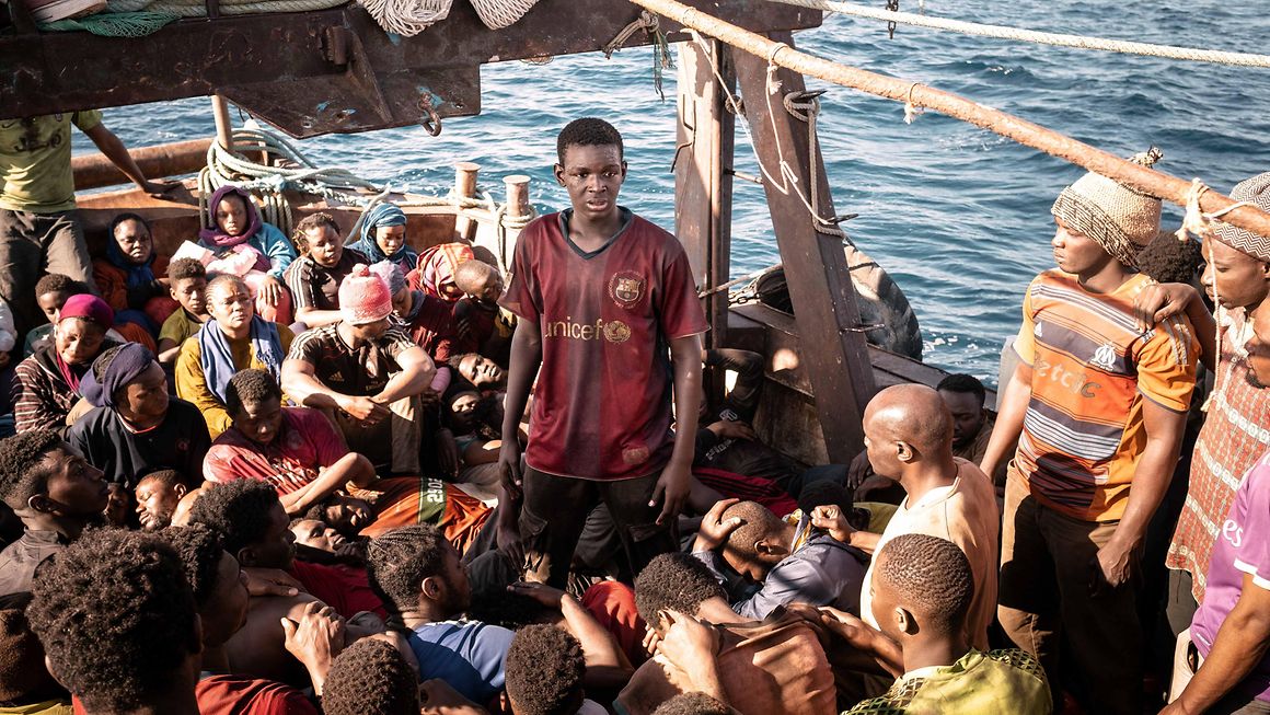 Nella prigione, intermediari dei ricchi libici, comprano gli uomini per farli lavorare come schiavi… Seydou, aiutato da un detenuto muratore, viene comprato per fare il manovale in una villa nel deserto… costruiscono una fontana che molto piace al padrone… gli viene data la libertà e i soldi per andare a Tripoli. Nella capitale libica Seydou lavora nell’edilizia e un po’ avventurosamente (forse troppo) ritrova Moussa, ferito a una gamba. In ospedale non accettano clandestini e i ragazzi decidono di riprendere il viaggio verso l’Italia. Non hanno abbastanza denaro per attraversare il Mediterraneo… gli scafisti raggiungono un accordo con Seydou… impartiscono poche istruzioni al ragazzo e gli affidano un peschereccio gremito di profughi che deve guidare fino alle coste italiane… gli danno anche il numero di telefono delle organizzazioni non governative per avvertirle sull’arrivo dei disperati. Seydou riesce a portare la “carretta del mare” in Sicilia e ai militari che li traggono in salvo, urla: “Io capitano”, Io capitano, Io capitano”. Il ragazzo è diventato capitano della propria esistenza.