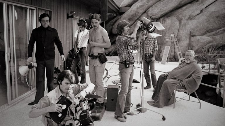 Per comprendere appieno L’altra faccia del vento, sarebbe importante visionare il documentario di Morgan Neville, Mi ameranno quando sarò morto (2018)… qui si veleggia negli ultimi quindici anni di cinevita di Welles e Neville incentra il lavoro proprio sull’ultimo film del maestro ripudiato da Hollywood… naturalmente, non ha niente a che fare con l’8½ di Fellini, come è stato scritto… qui e dappertutto Welles reinventa il concetto di cinema, Fellini (dopo La dolce vita) semmai lo seppellisce nell’alto artigianato della nostalgia… sotto le formule giacciono i cadaveri eccellenti del cinema, solo i dinamitardi di tutte le morali restano fuori dagli ossari delle definizioni e ridono di ubriache utopie, sempre mal comprese e volutamente ignorate. Innamorato del cinema, Welles lo rendeva un disingannato della perfezione e questa leggiadria etica/estetica faceva di lui l’assassino gentile del cinema mercantile.