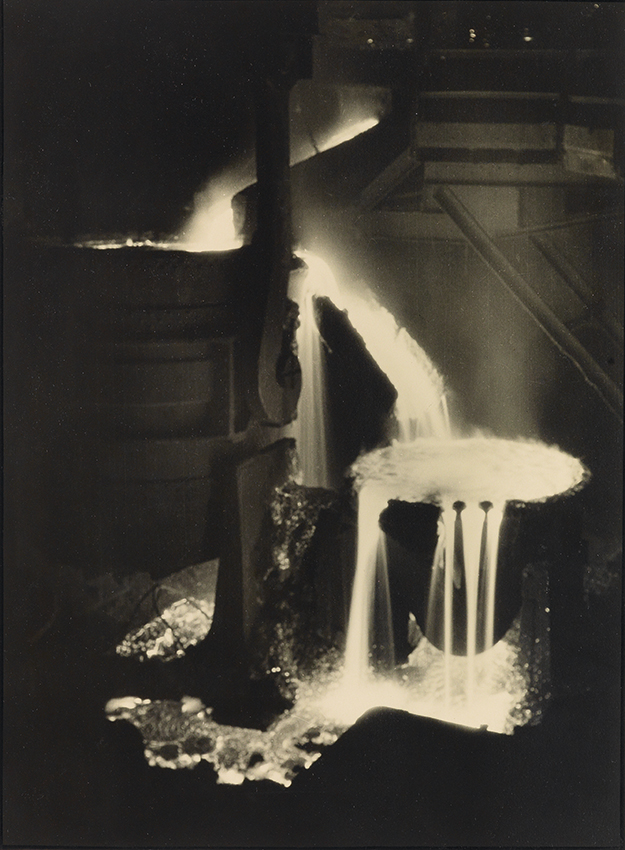 La fotografia industriale della Bourke-White… in qualche modo riporta, è vero, al cinema espressionista tedesco degli anni ’10/’20, almeno per i contrasti di luce/ombre… la forza evocativa delle inquadrature, l’uso singolare delle prospettive… da qui a ricordare Lo studente di Praga (1913) di Stellan Rye, Il Golem (1915) di Paul Wegener e Henrik Galeen, Il gabinetto del dottor Caligari (1920) di Robert Wiene, Nosferatu il vampiro (1922) di Friedrich Wilhelm Murnau o Metropolis (1927) di Fritz Lang… ce ne corre… qualcuno addirittura ha messo in relazione la creatività (industriale) della Bourke-White con la pittura cubista… sì, la sovrapposizione dei piani, la riduzione da tridimensionale a bidimensionale si possono vedere nelle sue immagini, ma le geometrie astratte o il dinamismo dell’astratto di Moholy Nagy o Edward Steichen, proprio non ci sono… l’energia, la potenza, la costruzione di sé fuoriescono dall’edificazione fotografica-industriale della Bourke-White… e la vitalità estetica trabocca di vita vissuta… fabbriche, tubature, ciminiere, navi, ponti, officine… diventano metafora del mondo a venire… il reale è un flusso espressivo in ebollizione e nella dialettica tra significante e significato mette il primo al servizio del secondo… l’esistenza della fotografia è subordinata al senso storico che le corrisponde… ma lo rovescia e promuove come bene prezioso che non accetta nulla al di sopra, nulla al di sotto dei costruttori di ricchezza che l’hanno realizzato! Lì la Bourke-White vede il vero luogo dell’arte, dice… e io ci credo!
