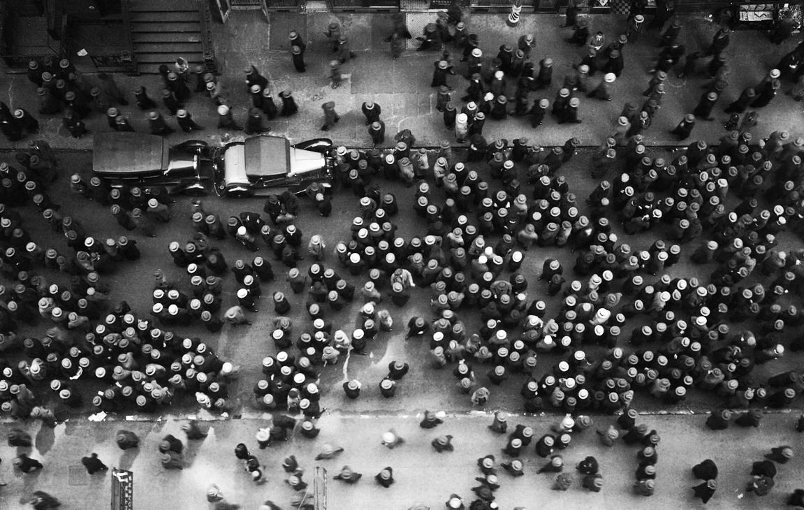 L’iconografia trasversale della Bourke-White tocca momenti etici alti e le citazioni della grande fotografia sociale di Walker Evans, Dorothea Lang o Ben Shahn non sono impertinenti. Anche se a Evans (autore, con James Agee, di uno dei libri più importanti del fotogiornalismo, Sia lode ora a uomini di fama, 1941)16, proprio non piaceva quella ragazza vestita bene che metteva in posa i contadini americani per cogliere l’estrema povertà della loro esistenza. La filosofia di queste immagini del disastro economico dell’America contadina e proletaria, andava oltre il motto di Life: “Vedere la vita, vedere il mondo”. Bourke-White non ci fa vedere soltanto la vita di un uomo, ma come vive questo uomo e come sta al mondo.