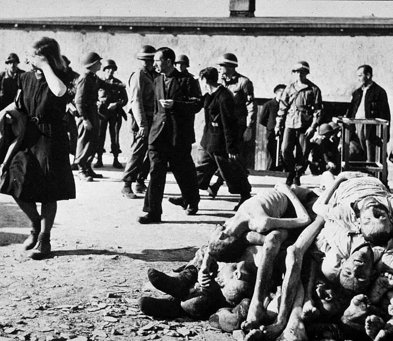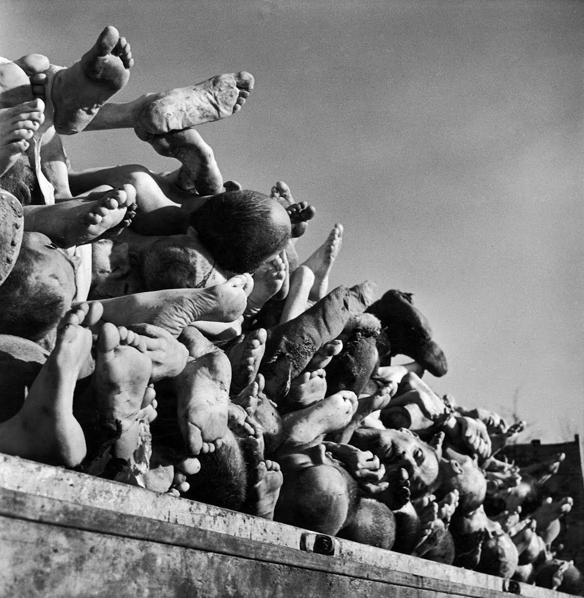 Una fotografia della Bourke-White, fatta a Buchenwald, mostra la pochezza intellettuale del popolo nazista… a destra dell’immagine si vedono una catasta di assassinati… sullo sfondo i soldati che spingono i “bravi cittadini” a vedere di cosa sono stati capaci i seguaci di Hilter… qualcuno finge di essere lì per caso… ha dimenticato, magari, di aver denunciato gli ebrei alla Gestapo… una signora in nero, si porta la mano agli occhi e guarda da un’altra parte… non vuole vedere… i nazisti sembra che non conoscono le lacrime… solo il fucile e le camere a gas… un po’ poco per chi ha creduto alle pretese della razza ariana… imbecilli senza remissione dei peccati, i nazisti sono sempre più avanti dei loro escrementi… appaiono un misto tra assassini dell’ottimismo e santi dell’ottusità… la fotografia della Bourke-White lo dice bene… i corpi dei nazisti fuggono la colpevolezza o cercano di nasconderla alla fotocamera, temono l’abdicazione della tirannia ma non l’accettano… quel marciume di corpi non emana “buon odore”, si vede… non c’è niente di più ignobile di un adulatore del crimine costituito in una ideologia, una fede o una pianificazione economica (prima e dopo qualsiasi guerra).