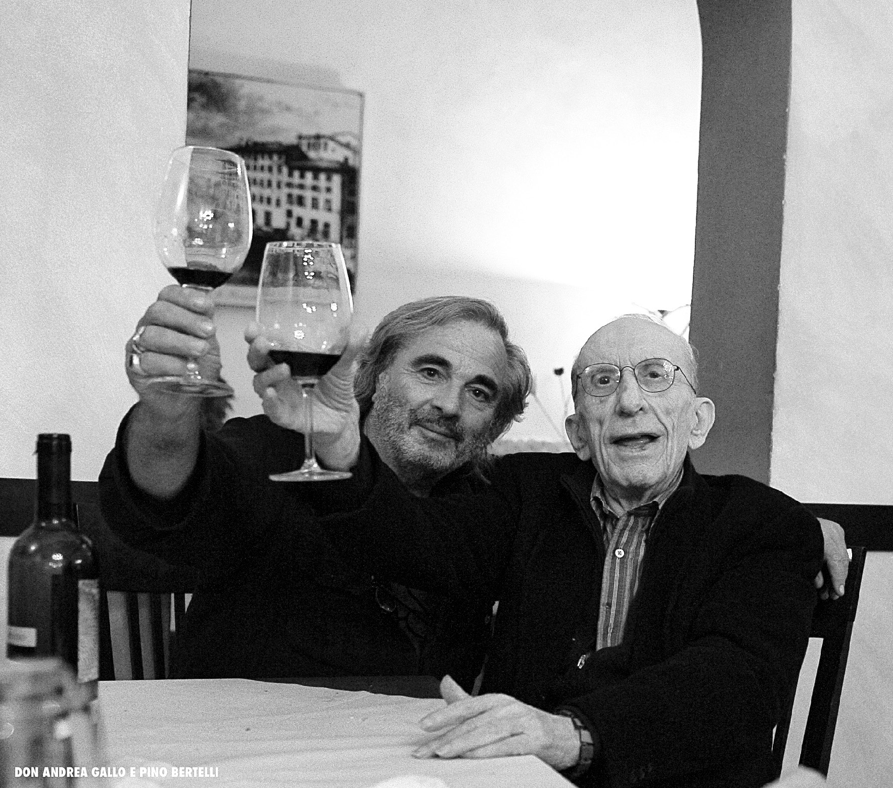 Conversazioni su resistenza e liberazione sotto la luna rossa di Genova (Il brano qui riportato è parte di una lunga conversazione sui giovani, democrazia, resistenza e solidarietà liberatrice, tra Don Andrea Gallo e Pino Bertelli, avvenuto sotto la luna rossa di Genova, 25 volte gennaio 2012 (24,30— 4,00), nell’archivio di Don Andrea Gallo [ è solo un breve capitolo di un saggio ancora inedito, Il vangelo dei poveri, secondo Don Andrea Gallo, che raccoglie anni di interviste, discussioni, passioni e utopie possibili disseminate in lunghe notti passate insieme ]… è l’augurio di un prete, “evangelicamente anarchico”, per l’avvento di un’indignazione sociale che porti alla nascita di nuove “primavere di bellezza”… come sa anche l’ultimo dei bambini massacrato dalle bombe delle “guerre umanitarie”, il profumo del gelsomino può mutare il corso delle costellazioni.