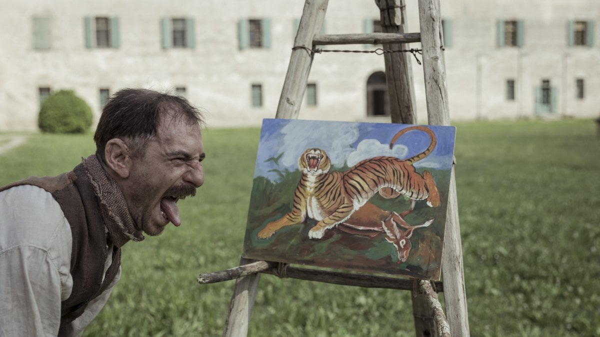 Il film di Diritti racconta con discrezione e amabilità l’anima persadi Ligabue… attraverso serrati flashback (perfino troppi) mostra pezzi d’infanzia infelice e le sue origini svizzero-italiane… il piccolo Antonio è un ragazzo irrequieto, cerca l’amore della madre che lo respinge e viene adottato da una famiglia estremamente povera… si ammala di rachitismo, ha il gozzo, manifesta disturbi pisicofisici… viene espulso dalla scuola e dopo aver aggredito la madre è ricoverato in manicomio… vive a Gualtieri, in Emilia… ma spesso dorme nei boschi, dove capita… però sa disegnare, dipingere, fare scultura… e così “El Tudesc” raffigura contadini che arano con le mucche, seminano con i cavalli, aquile, volpi, leoni, tigri immersi nel paesaggio emiliano… i suoi autoritratti (eccezionale l’“Autoritratto con cane”, che lo eleva a fianco di quelli di Vincent van Gogh) proiettano la sua diversitàoltre il gesto creativo e portano a riflettere che l’arte, quando è grande, contiene l’emancipazione (o la caduta) di un’epoca.